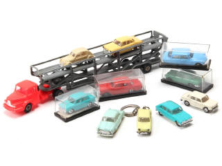 états de 'A' à 'C' - série MICROMINIATURES - miniatures reproduisant les modèles : UNIC, CITROEN, SIMCA, RENAULT (dont un faisant office de porte-clefs) & MERCEDES - 4 exemplaires en boîte - parties chromées plus ou moins ternies & d'autres plus ou moins fêlées - traces d'oxydation