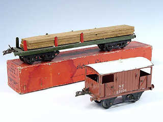 HORNBY 'O' (GB) RS683 Wagon à ranchers transport de bois n°2 vert & rouge