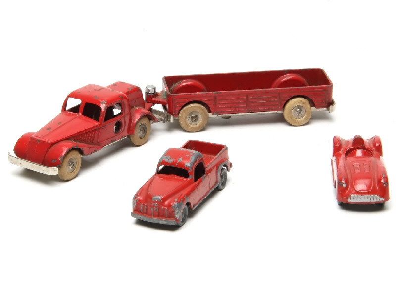 SOLIDO (FRANCE) Ensemble de 3 véhicules & une remorque rouge