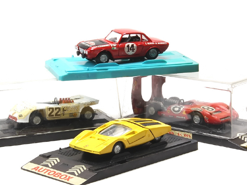 comprend : LANCIA FULVIA, FERRARI 512S, 312P & PORSCHE 908 (importants manques sur les décalques) - 3 exemplaires sous boîte vitrine 'AUTOBOX'