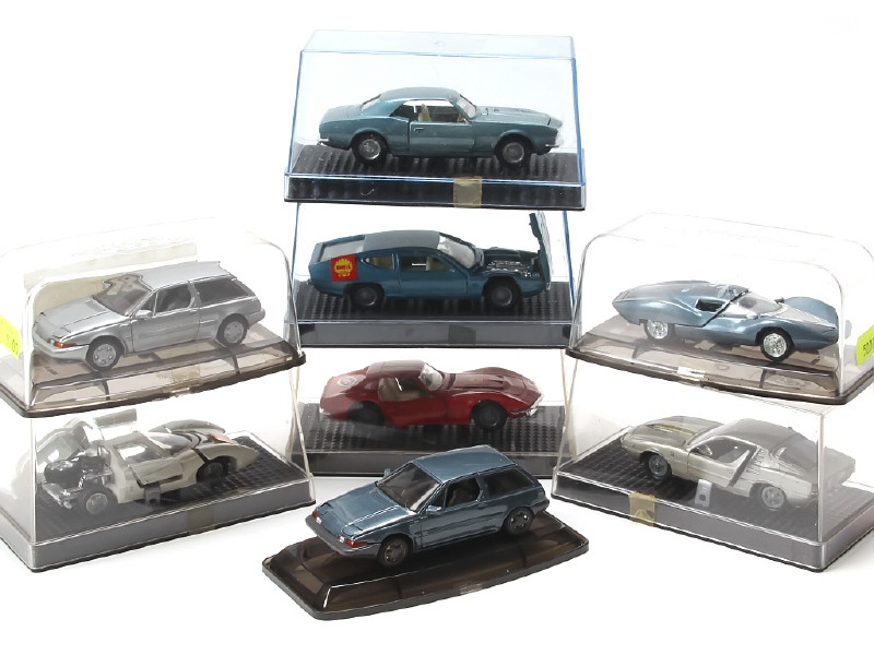 miniatures reproduisant les modèles : CHEVROLET, VOLVO, LAMBORGHINI & ALFA ROMEO - on y retrouve notamment les marques AHC & INTERCARS - quelques décorations & boîtes non d'origine