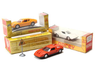 comprend les modèles : MERCEDES BENZ C111 (avec panneau de signalisation), COUPE LIGIER JS2 & LANCIA STRATOS - une boîte avec quelques accrocs (une étiquette de détaillant sur un rabat)