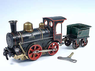 fabrication de 1901 à 1903 - moteur à clef (fonctionne) - avec clef - modèle restauré avec quelques pièces non d'origine - manque mains courantes latérales de chaudière - PIECE TRES INTERESSANTE !