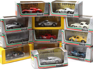 miniatures reproduisant les modèles : FERRARI & AC - on y retrouve les marques : MODEL BOX & IDEA 3 - quelques fêlures sur les boîtes