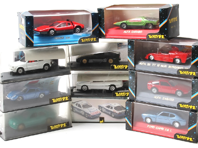 miniatures reproduisant les modèles : ALFA ROMEO, FERRARI, FORD, PEUGEOT, ALPINE, MERCEDES & PORSCHE - une carrosserie légèrement déformée - quelques boîtes sans suremballage