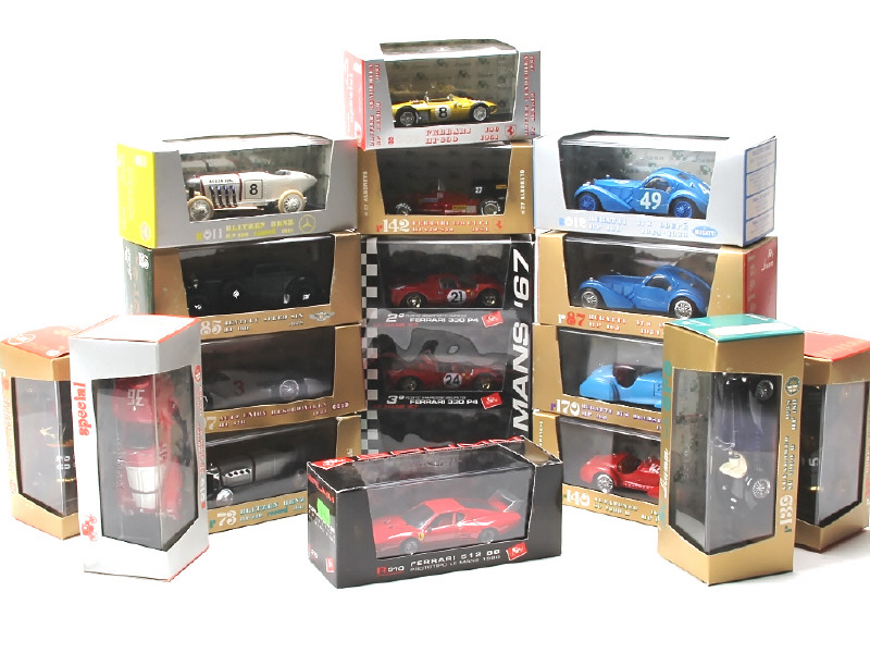 miniatures reproduisant notamment les modèles : BENZ, AUTO UNION, FERRARI, BENTLEY & BUGATTI