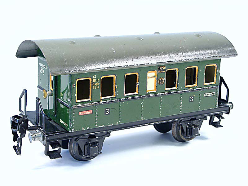 MÄRKLIN 'O' (ALLEMAGNE) 1727/0 Voiture 'Boîte à tonnerre' 3ème classe vert, toit gris