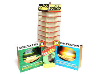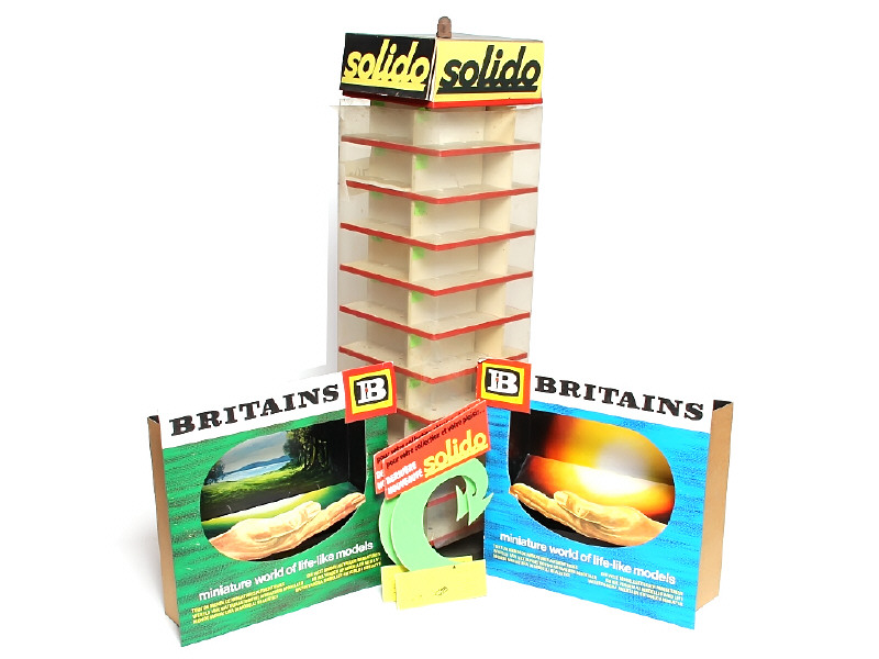 comprend les marques : SOLIDO (dont une colonne tournante état 'C', encrassée, dimensions 74 x 15 cm) & BRITAINS