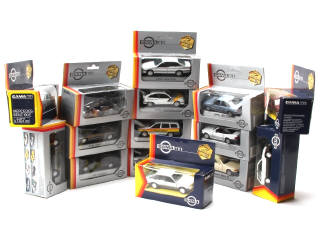 miniatures reproduisant les modèles : OPEL, MERCEDES, BMW & VOKSWAGEN - quelques petits accrocs & déformations sur les boîtes par endroits