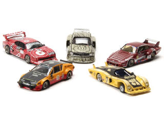 états de 'A' à 'C' - comprend : BMW (2 exemplaires différents), ALPINE A310, 442 & PORSCHE - on y retrouve les marques : MINI RACING & MRE (éclats majeurs) - quelques accessoires manquants, cassés & d'autres à recoller