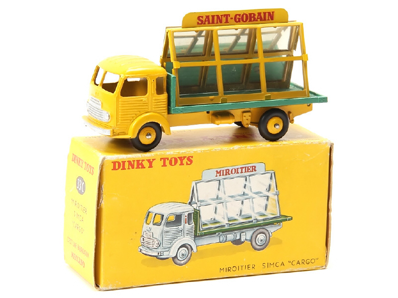 DINKY TOYS (FRANCE) 33C SIMCA CARGO Miroitier 'SAINT GOBAIN' (version avec jantes convexes) jaune, plateau vert & jantes jaunes