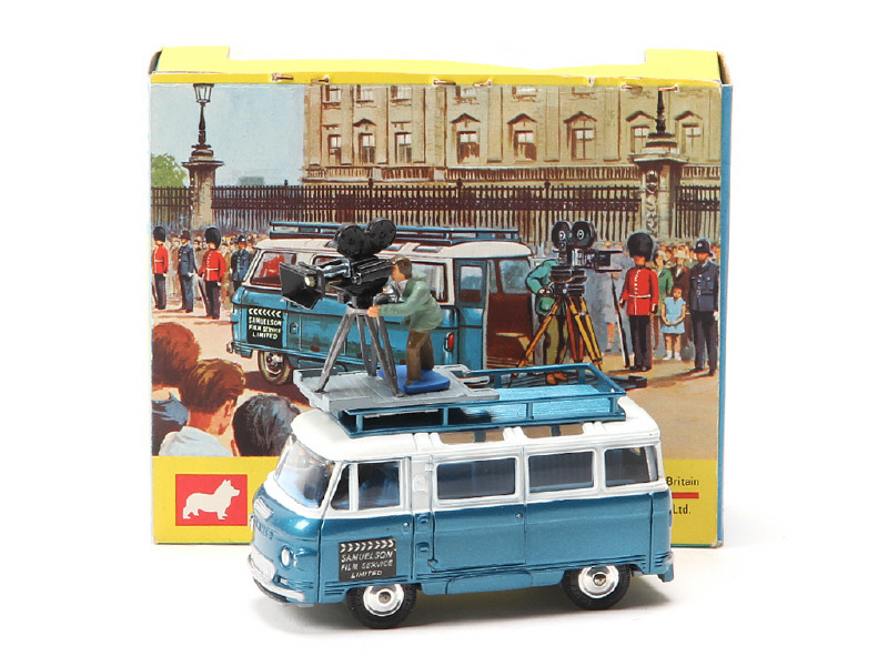 CORGI TOYS (GB) 479 COMMER Bus de reportage avec caméra bleu métal & blanc