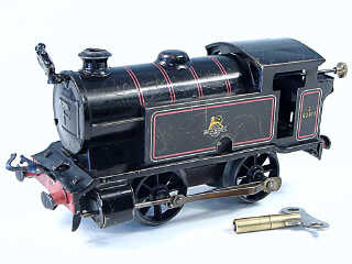 lanterne ajoutée à l'avant de la locomotive - moteur à clef (fonctionne) - avec clef - un attelage non d'origine & un autre incomplet