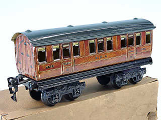 MÄRKLIN 'O' (ALLEMAGNE) 2873/0 Voiture-voyageurs première & 3ème classes 'G.N.R' teck & gris