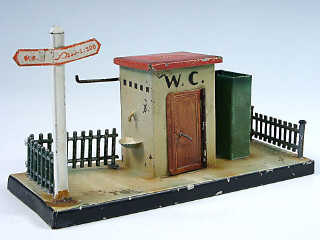 KIBRI 'O' (ALLEMAGNE) Toilettes publiques simples en tôle peinte crème, vert & rouge