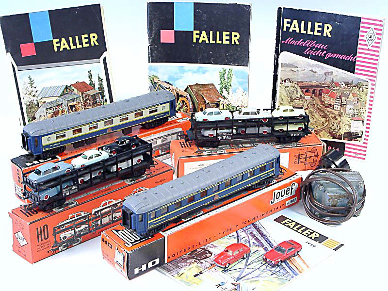 JOUEF 'HO' (FRANCE) 654 Ensemble de 2 wagons porte-voitures 'STVA' avec véhicules