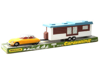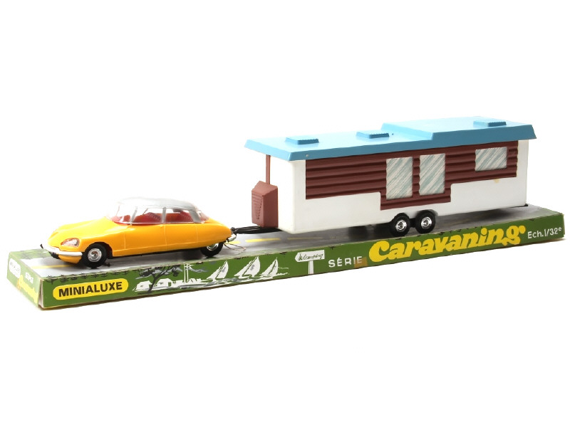 échelle 1/32ème - contient une CITROËN DS 21 (carrosserie très légèrement déformée) avec mobil-home - manque blister de boîte