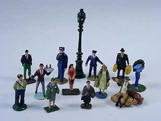 comprend : 9 voyageurs, un serveur, 2 employés de gare, 2 sacs & un lampadaire
