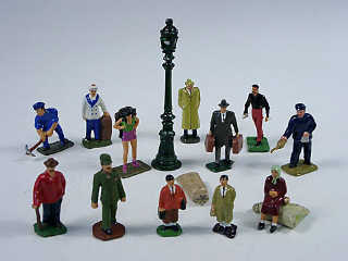 comprend : 10 voyageurs, 2 ouvriers, 2 sacs & un lampadaire