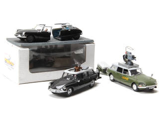 comprend les modèles : break 'BBC' (un rétroviseur à recoller, manque un décalque), reportage & berline (tiré du film 'LE CERVEAU') - on y retrouve notamment la marque CAR MANIAC (en boîte état 'b')