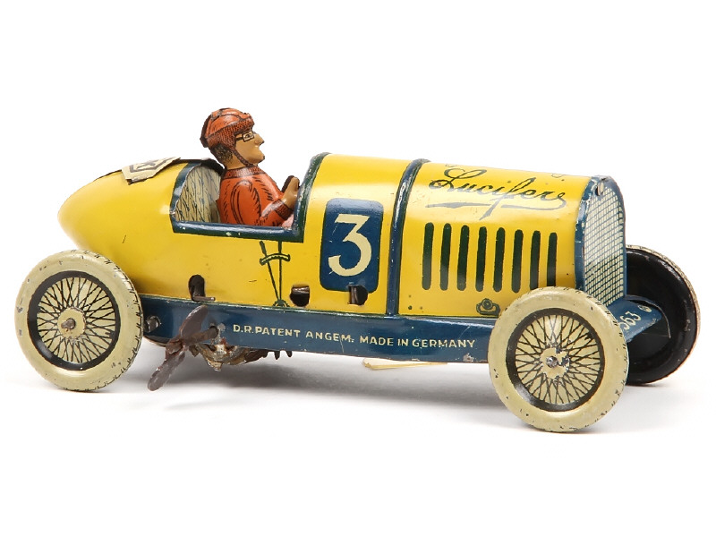 GREPPERT & KELCH (ALLEMAGNE) 563 Voiture de course en tôle lithographiée 'LUCIFER' jaune & bleu
