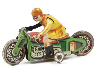 PAYA (ESPAGNE) Moto avec pilote en tôle lithographiée jaune, vert & rouge