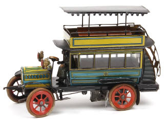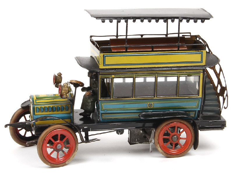 GUNTHERMANN (ALLEMAGNE) Autobus à impérial en tôle lithographiée noir, bleu & jaune