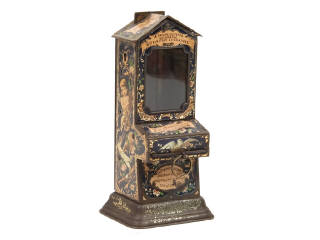 hauteur : 16 cm - une pièce de monnaie actionnait le mécanisme de distribution, permettant d'obtenir un carré de chocolat à l'aide de la tirette - l'état est dû principalement à des manques importants de pellicule dorée sur l'ensemble du modèle
