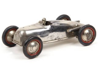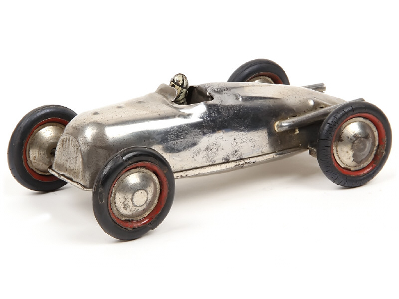 longueur : 15,5 cm - avec moteur à clef (fonctionne) & direction - modèle décapé avec parties plus ou moins ternies - pneus endommagés