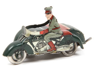 TIPPCO (ALLEMAGNE) 703 Moto avec side-car de police en tôle lithographiée vert foncé