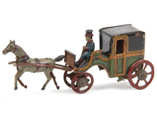 FISCHER & Co (ALLEMAGNE) Calèche hippomobile en tôle lithographiée vert, noir & rouge