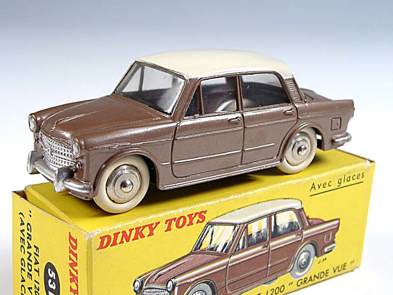 DINKY TOYS (FRANCE) 531 FIAT 1200 GRANDE VUE (version avec jantes convexes) havane métal, toit crème