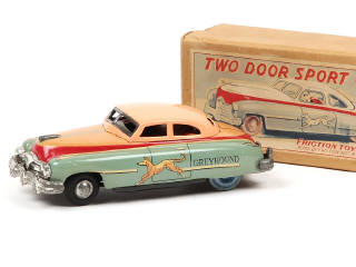 DIVERS (JAPON) Coupé en tôle lithographiée 'GREYHOUND' bleu pâle, rouge & saumon