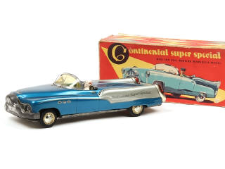 fabriqué en Allemagne - longueur : 35 cm - avec essuie-glaces actionnés par le moteur à friction (fonctionne) - parties chromées plus ou moins ternies - manques de peinture sur le pilote