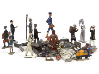 hauteur moyenne : 4 cm - demi ronde-bosse - comprend des scènes de la vie courante - petites parties cassées & manquantes - quelques exemplaires en état 'E'