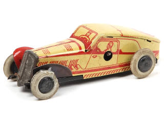 M.L. (FRANCE) 110 Voiture de course aérodynamique en tôle lithographiée crème & rouge