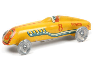 JEP (FRANCE) BUGATTI Auto de course en tôle lithographiée jaune