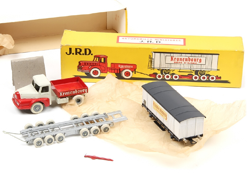 JRD (FRANCE) 123 UNIC avec remorque rail-route 'KRONENBOURG' blanc cassé & rouge