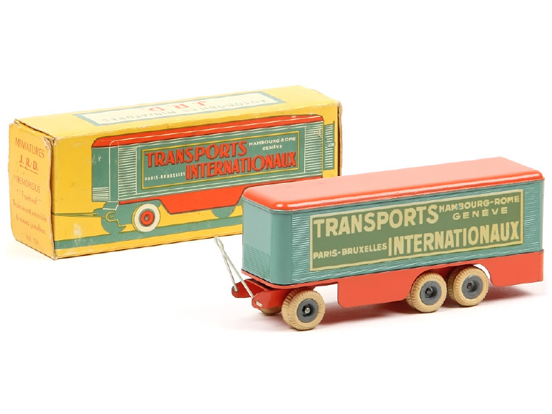 JRD (FRANCE) 129 Remorque 'TRANSPORTS INTERNATIONAUX' vert canard & orange