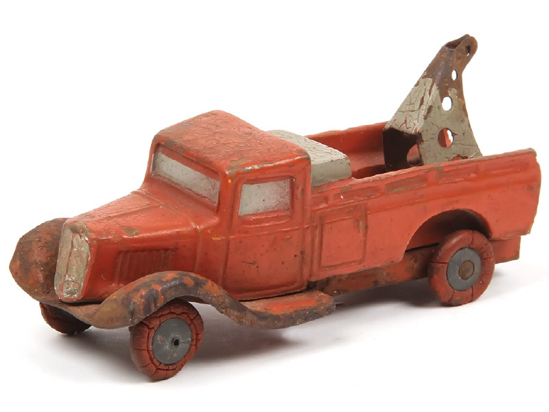 fabrication en plâtre & farine sur châssis en tôle (JOUETS CITROËN) - longueur : 10,5 cm - le châssis-ailes & la chèvre (sans crochet) sont en état 'E' avec oxydation - direction restaurée (bloquée avec traces de soudures) - pneus séchés & endommagés
