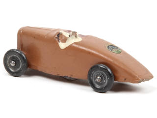 réalisation en plâtre & farine & roues en métal - longueur : 8,5 cm - un éclat sur le casque du pilote