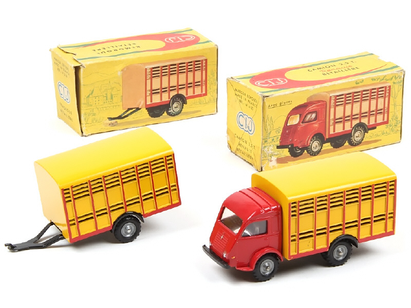 C.I.J. (FRANCE) 3/28 Remorque-bétaillère jaune d'or & rouge