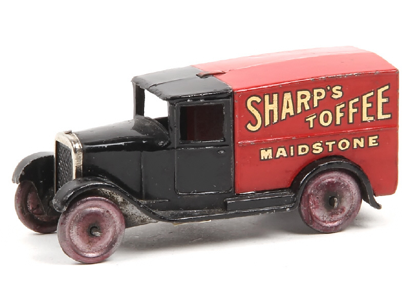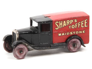 DINKY TOYS (GB) 28H Delivery van 'SHARP'S TOFFEE MAIDSTONE' noir & rouge, roues rouge irisé