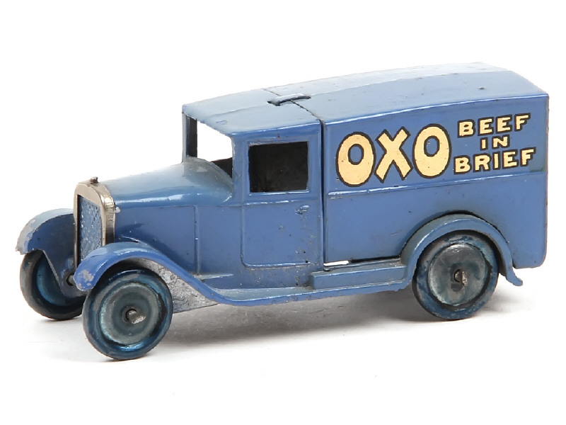 DINKY TOYS (GB) 28-1-D Delivery van 'OXO BEEF IN BRIEF BEEF AT ITS BEST' bleu, roues bleue irisé