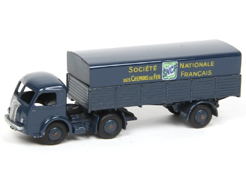 DINKY TOYS (FRANCE) 32AB PANHARD Semi-remorque 'S.N.C.F' (version avec intérieur de toit lisse) bleu foncé (fond de l'écusson uni)