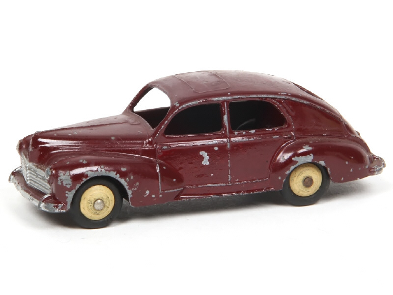 DINKY TOYS (FRANCE) 24R PEUGEOT 203 Petite lunette arrière (version avec intérieur de toit lisse & feu de stop) chocolat, jantes crème