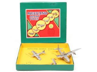 coffret vide - le coffret comprenait initialement : POTEZ Type 56 , HENRIOT Type H 180-M, DEWOITINE Type 500, FARMAN Type F 360, POTEZ Type 58 & DEWOITINE Type D 338 - avec cale de présentation (sans ficelle) - très légèrement déformée - on y joint un MAYO COMPOSITE (DINKY GB) en état 'F' avec importantes traces de métal fatigue