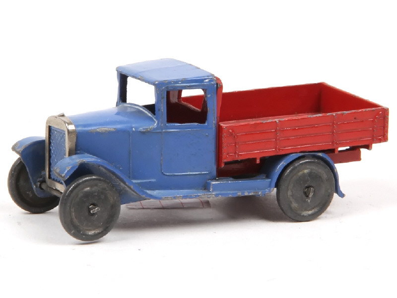 DINKY TOYS (GB) 22C Camion-plateau à ridelles bleu moyen & rouge