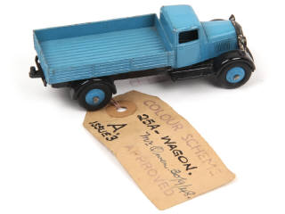DINKY TOYS (GB) 25A Camion-plateau à ridelles bleu, châssis noir & jantes bleues
