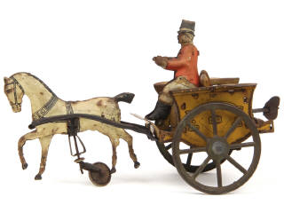 GREPPERT & KELCH (ALLEMAGNE) 501 Charrette hippomobile en tôle lithographiée jaune, blanc & rouge